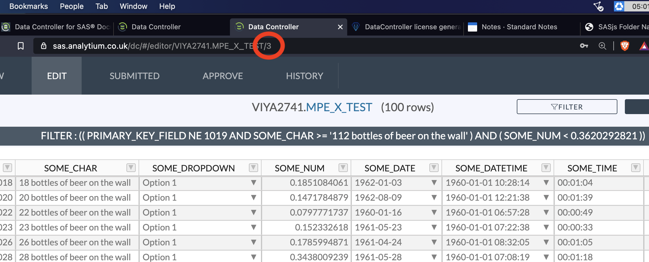 When filters are submitted, the query is stored, and a unique URL is generated. This means you can share the link to a filtered view of a table! This can be used for VIEW, for EDIT and also for downloading data.